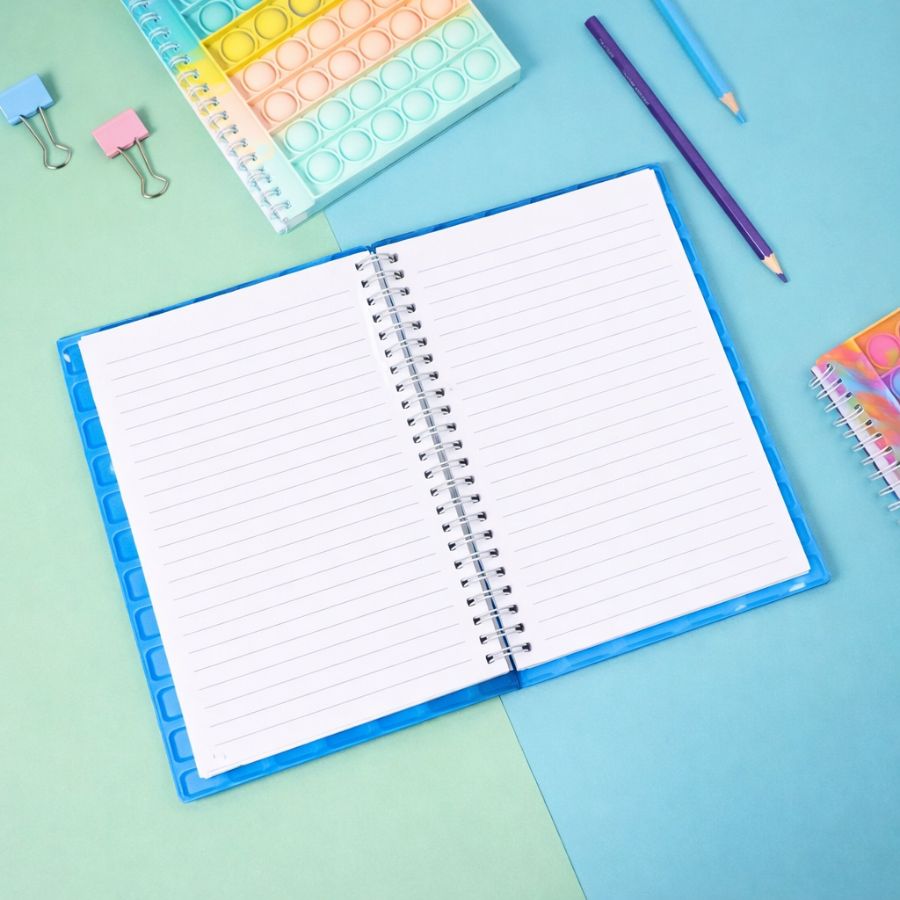 The Pop It Fidget Notebook – Blue Edition is a creative combination of a functional notebook and a sensory fidget toy. Designed with a soft silicone bubble cover, this diary allows kids (and even adults) to pop bubbles while studying, journaling, or taking notes.